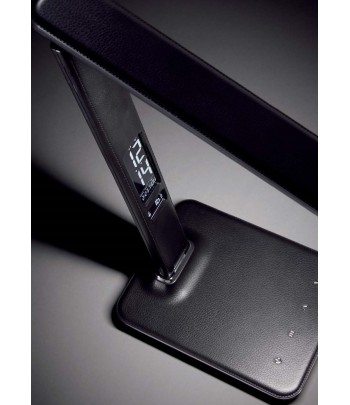 FLEXO EFECTO PIEL LED DE 9W CON RELOJ, TEMPERATURA Y CARGADOR USB.